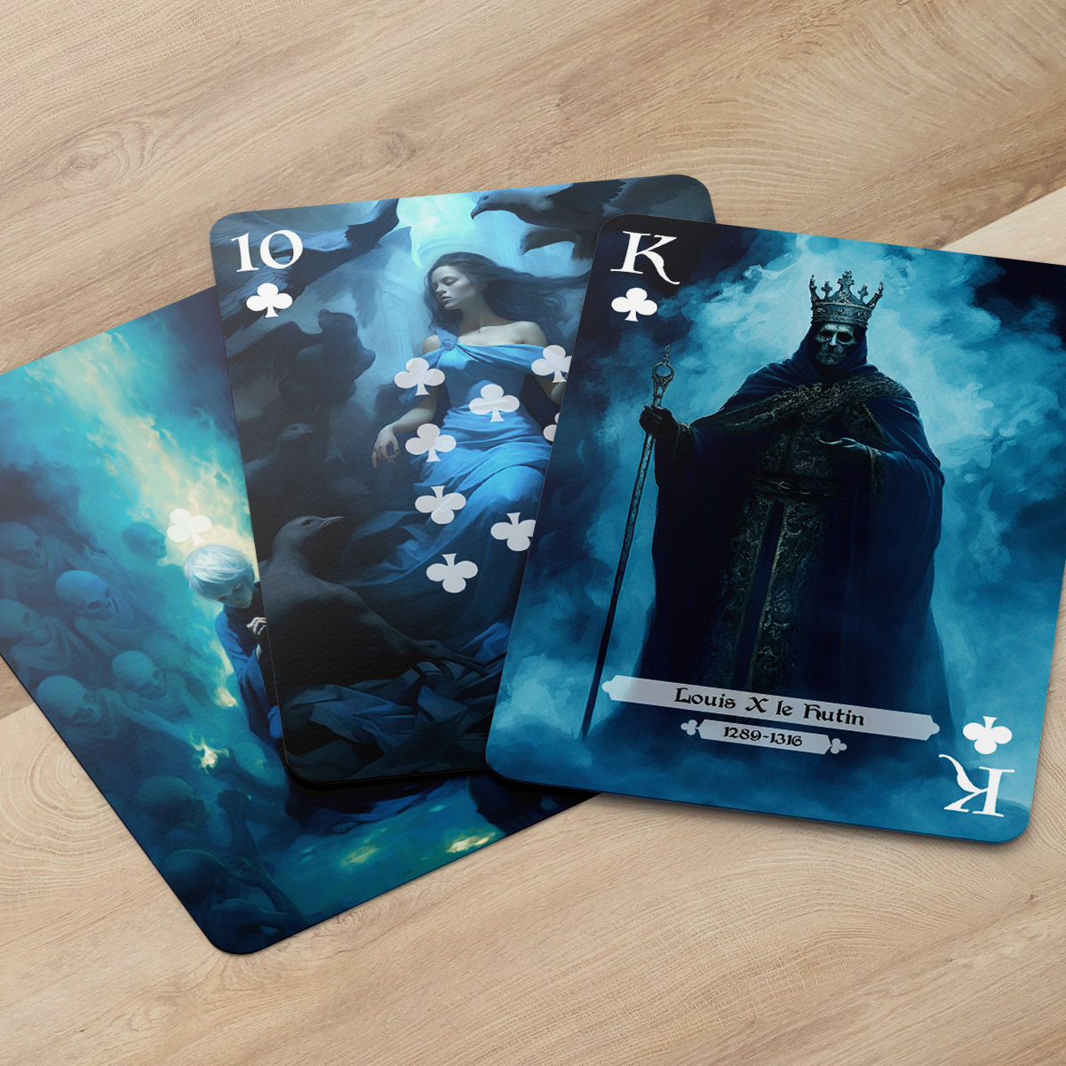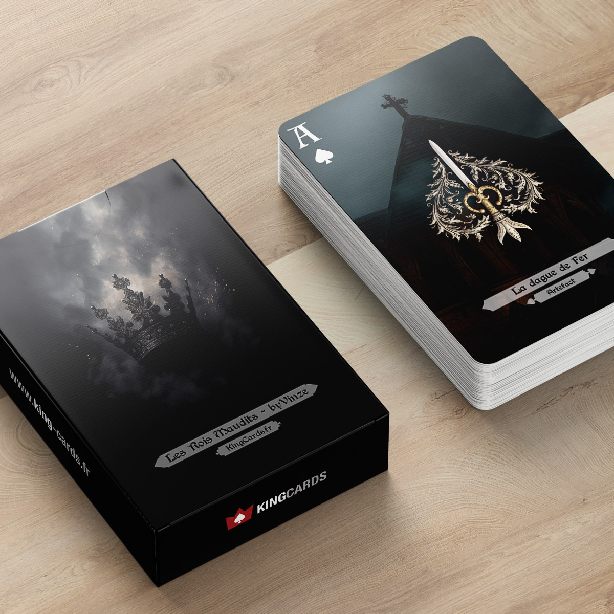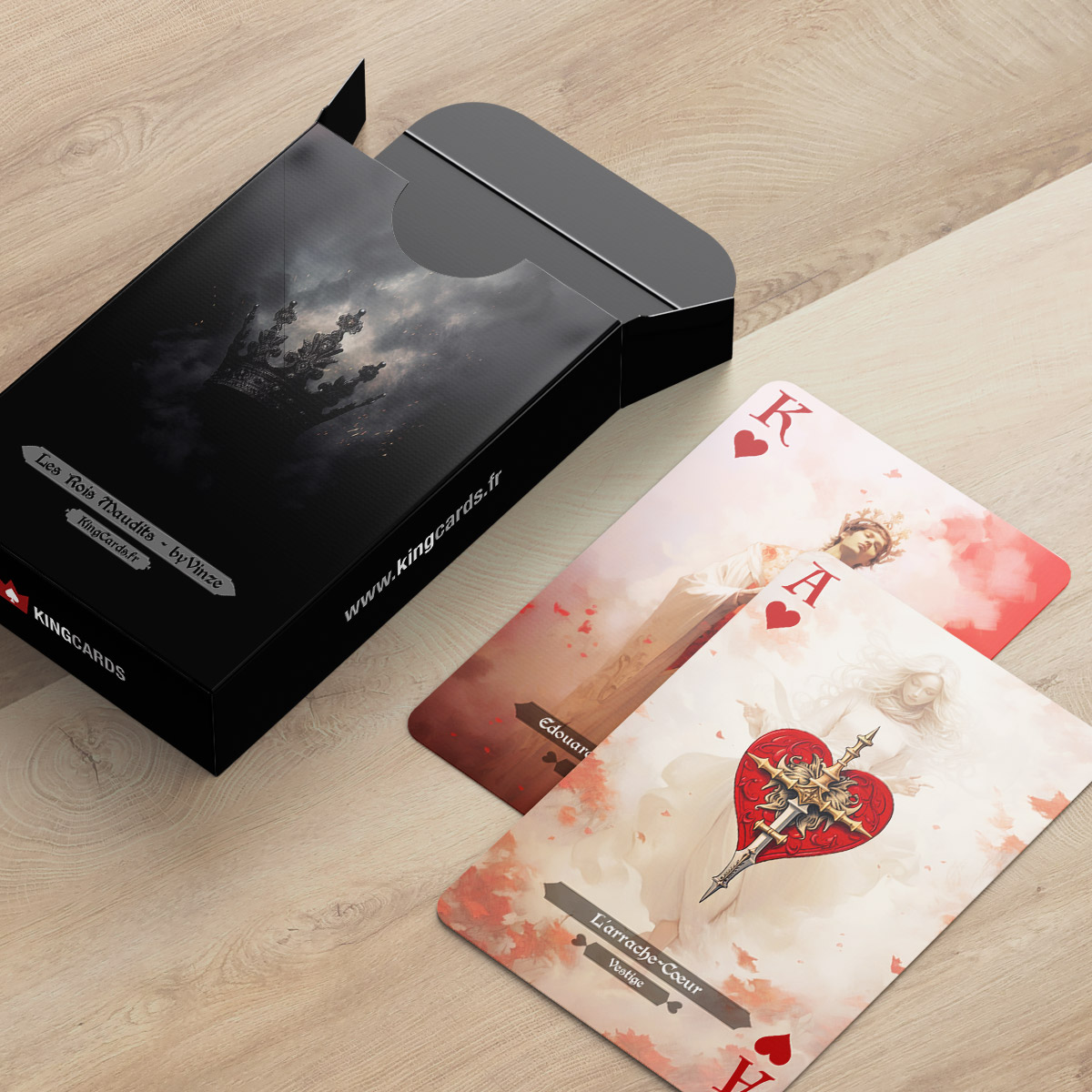 Le jeu des Rois Maudits, créé par l’artiste © Vinze, est une fusion unique entre le poker et l’histoire captivante des Rois Capétiens. Chaque carte est soigneusement conçue pour représenter les personnages et les éléments clés de cette épopée tragique. Numéroté et authentifié, ce jeu de cartes est accompagné d’un certificat d’authentification et de la signature de l’artiste. Plongez dans un univers de violence, de tromperie et de manipulation, tout en appréciant l’esthétique romantique, mystérieuse et troublante du design des cartes. Avec le jeu des Rois Maudits, vivez une expérience immersive où stratégie et histoire se rencontrent.